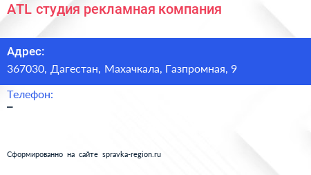ATL студия, рекламная компания по адресу 367030, Дагестан, Махачкала, Газпромная, 9 в дальнейшем Организация, размещена в следующих категориях:
