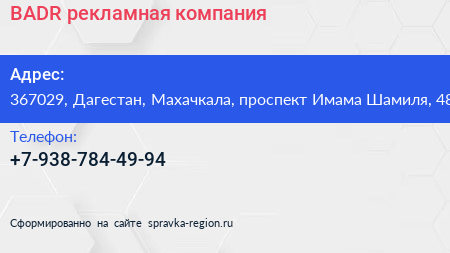 BADR, рекламная компания по адресу 367029, Дагестан, Махачкала, проспект Имама Шамиля, 48 в дальнейшем Организация, размещена в следующих категориях: