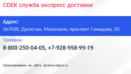 CDEK, служба экспресс-доставки по адресу 367030, Дагестан, Махачкала, проспект Гамидова, 20 в дальнейшем Организация, размещена в следующих категориях: