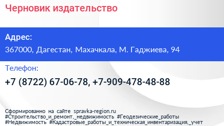 Черновик, издательство по адресу 367000, Дагестан, Махачкала, М. Гаджиева, 94 в дальнейшем Организация, размещена в следующих категориях: