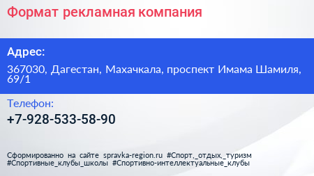 Формат, рекламная компания по адресу 367030, Дагестан, Махачкала, проспект Имама Шамиля, 69/1 в дальнейшем Организация, размещена в следующих категориях: