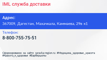 IML, служба доставки по адресу 367009, Дагестан, Махачкала, Каммаева, 29в к1 в дальнейшем Организация, размещена в следующих категориях: