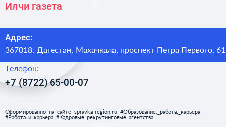 Илчи, газета по адресу 367018, Дагестан, Махачкала, проспект Петра Первого, 61 в дальнейшем Организация, размещена в следующих категориях: