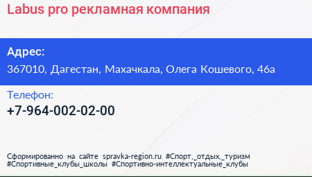 Labus.pro, рекламная компания по адресу 367010, Дагестан, Махачкала, Олега Кошевого, 46а в дальнейшем Организация, размещена в следующих категориях: