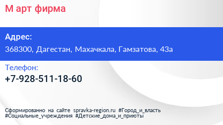 М-арт, фирма по адресу 368300, Дагестан, Махачкала, Гамзатова, 43а в дальнейшем Организация, размещена в следующих категориях: