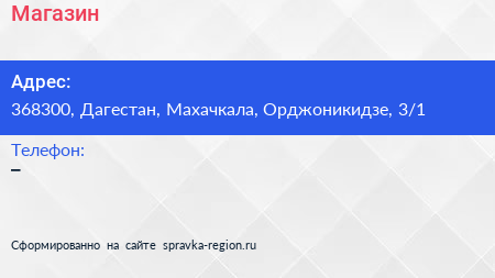 Магазин по адресу 368300, Дагестан, Махачкала, Орджоникидзе, 3/1 в дальнейшем Организация, размещена в следующих категориях: