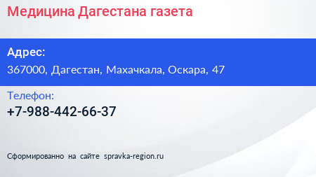 Медицина Дагестана, газета по адресу 367000, Дагестан, Махачкала, Оскара, 47 в дальнейшем Организация, размещена в следующих категориях: