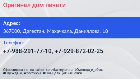 Оригинал, дом печати по адресу 367000, Дагестан, Махачкала, Даниялова, 18 в дальнейшем Организация, размещена в следующих категориях: