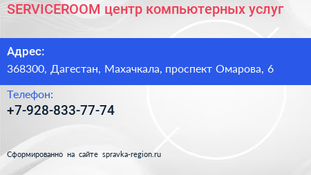 SERVICEROOM, центр компьютерных услуг по адресу 368300, Дагестан, Махачкала, проспект Омарова, 6 в дальнейшем Организация, размещена в следующих категориях: