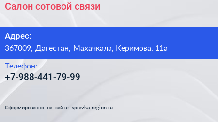 Салон сотовой связи по адресу 367009, Дагестан, Махачкала, Керимова, 11а в дальнейшем Организация, размещена в следующих категориях: