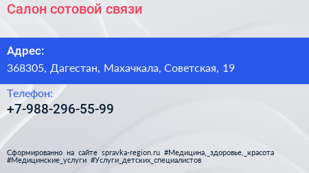 Салон сотовой связи по адресу 368305, Дагестан, Махачкала, Советская, 19 в дальнейшем Организация, размещена в следующих категориях: