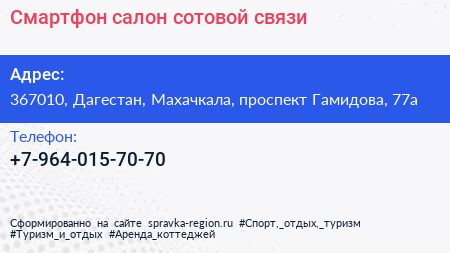 Смартфон, салон сотовой связи по адресу 367010, Дагестан, Махачкала, проспект Гамидова, 77а в дальнейшем Организация, размещена в следующих категориях: