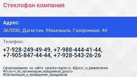 Стеклофан, компания по адресу 367030, Дагестан, Махачкала, Газпромная, 44 в дальнейшем Организация, размещена в следующих категориях: