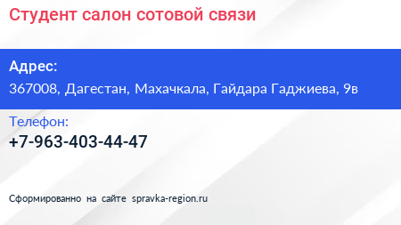 Студент, салон сотовой связи по адресу 367008, Дагестан, Махачкала, Гайдара Гаджиева, 9в в дальнейшем Организация, размещена в следующих категориях:
