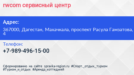 rwcom, сервисный центр по адресу 367000, Дагестан, Махачкала, проспект Расула Гамзатова, 4 в дальнейшем Организация, размещена в следующих категориях: