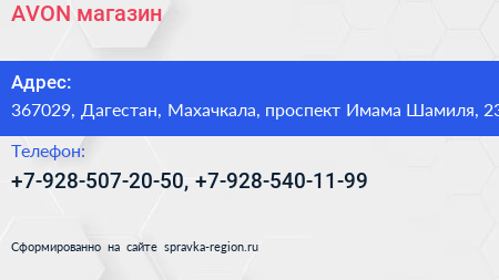 AVON, магазин по адресу 367029, Дагестан, Махачкала, проспект Имама Шамиля, 23 в дальнейшем Организация, размещена в следующих категориях: