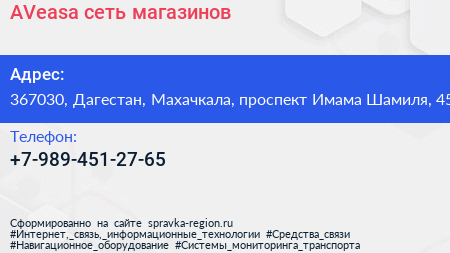 AVeasa, сеть магазинов по адресу 367030, Дагестан, Махачкала, проспект Имама Шамиля, 45 в дальнейшем Организация, размещена в следующих категориях: