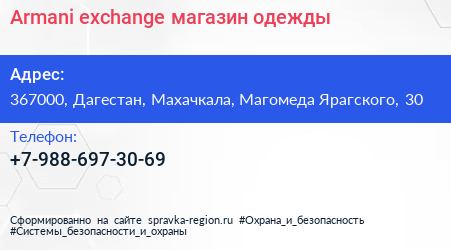 Armani exchange, магазин одежды по адресу 367000, Дагестан, Махачкала, Магомеда Ярагского, 30 в дальнейшем Организация, размещена в следующих категориях: