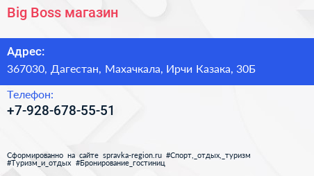 Big Boss, магазин по адресу 367030, Дагестан, Махачкала, Ирчи Казака, 30Б в дальнейшем Организация, размещена в следующих категориях: