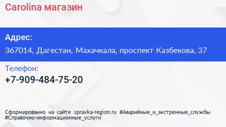 Carolina, магазин по адресу 367014, Дагестан, Махачкала, проспект Казбекова, 37 в дальнейшем Организация, размещена в следующих категориях: