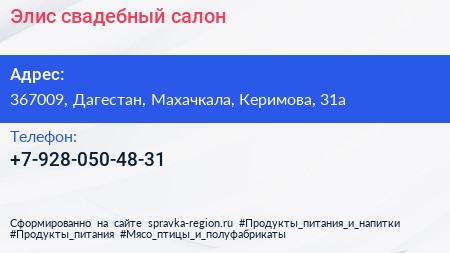 Элис, свадебный салон по адресу 367009, Дагестан, Махачкала, Керимова, 31а в дальнейшем Организация, размещена в следующих категориях:
