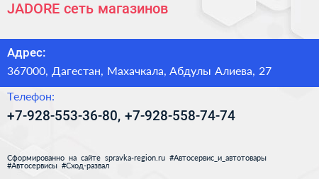 JADORE, сеть магазинов по адресу 367000, Дагестан, Махачкала, Абдулы Алиева, 27 в дальнейшем Организация, размещена в следующих категориях: