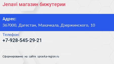 Jenavi, магазин бижутерии по адресу 367000, Дагестан, Махачкала, Дзержинского, 10 в дальнейшем Организация, размещена в следующих категориях: