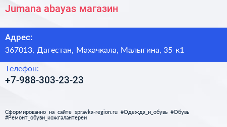 Jumana abayas, магазин по адресу 367013, Дагестан, Махачкала, Малыгина, 35 к1 в дальнейшем Организация, размещена в следующих категориях: