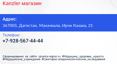 Kanzler, магазин по адресу 367003, Дагестан, Махачкала, Ирчи Казака, 21 в дальнейшем Организация, размещена в следующих категориях:
