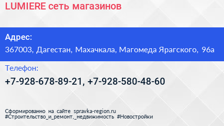 LUMIERE, сеть магазинов по адресу 367003, Дагестан, Махачкала, Магомеда Ярагского, 96а в дальнейшем Организация, размещена в следующих категориях: