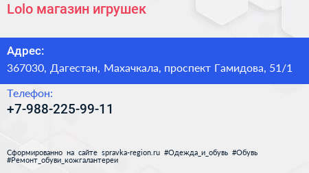 Lolo, магазин игрушек по адресу 367030, Дагестан, Махачкала, проспект Гамидова, 51/1 в дальнейшем Организация, размещена в следующих категориях: