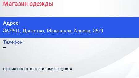 Магазин одежды по адресу 367901, Дагестан, Махачкала, Алиева, 35/1 в дальнейшем Организация, размещена в следующих категориях: