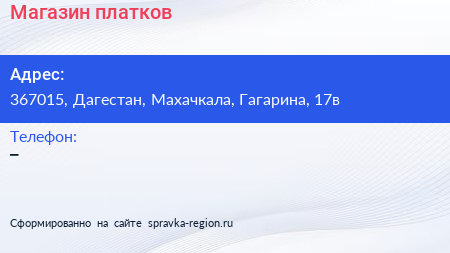 Магазин платков по адресу 367015, Дагестан, Махачкала, Гагарина, 17в в дальнейшем Организация, размещена в следующих категориях: