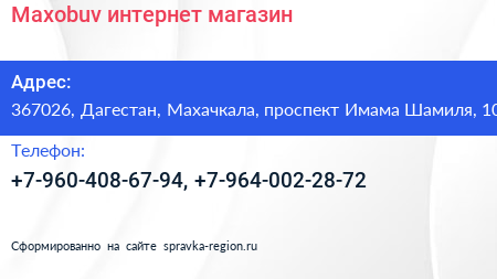 Maxobuv, интернет-магазин по адресу 367026, Дагестан, Махачкала, проспект Имама Шамиля, 10 в дальнейшем Организация, размещена в следующих категориях: