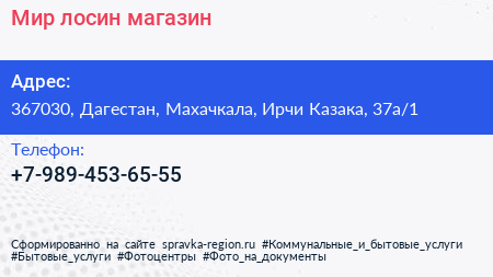 Мир лосин, магазин по адресу 367030, Дагестан, Махачкала, Ирчи Казака, 37а/1 в дальнейшем Организация, размещена в следующих категориях:
