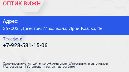 ОПТИК ВИЖН по адресу 367003, Дагестан, Махачкала, Ирчи Казака, 4е в дальнейшем Организация, размещена в следующих категориях: