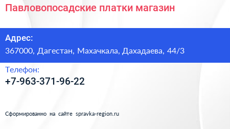 Павловопосадские платки, магазин по адресу 367000, Дагестан, Махачкала, Дахадаева, 44/3 в дальнейшем Организация, размещена в следующих категориях:
