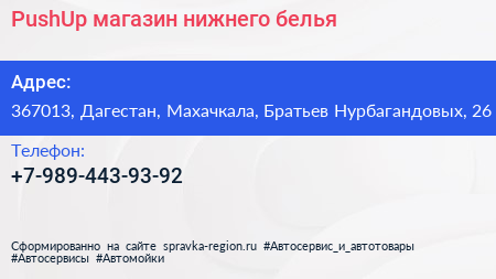 PushUp, магазин нижнего белья по адресу 367013, Дагестан, Махачкала, Братьев Нурбагандовых, 26 в дальнейшем Организация, размещена в следующих категориях: