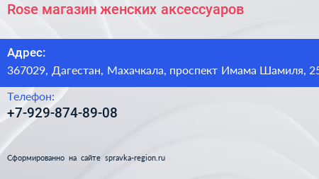 Rose, магазин женских аксессуаров по адресу 367029, Дагестан, Махачкала, проспект Имама Шамиля, 25 в дальнейшем Организация, размещена в следующих категориях: