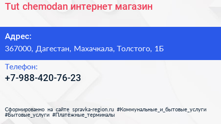 Tut chemodan, интернет-магазин по адресу 367000, Дагестан, Махачкала, Толстого, 1Б в дальнейшем Организация, размещена в следующих категориях: