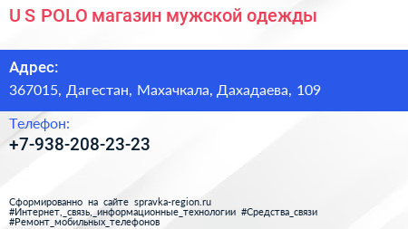 U.S. POLO, магазин мужской одежды по адресу 367015, Дагестан, Махачкала, Дахадаева, 109 в дальнейшем Организация, размещена в следующих категориях: