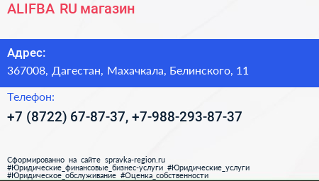 ALIFBA.RU, магазин по адресу 367008, Дагестан, Махачкала, Белинского, 11 в дальнейшем Организация, размещена в следующих категориях: