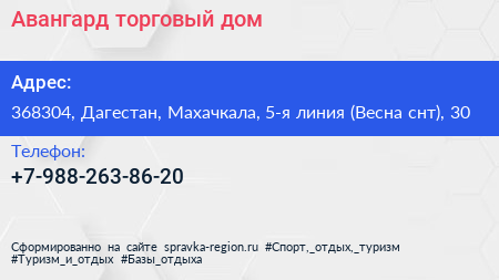 Авангард, торговый дом по адресу 368304, Дагестан, Махачкала, 5-я линия (Весна снт), 30 в дальнейшем Организация, размещена в следующих категориях: