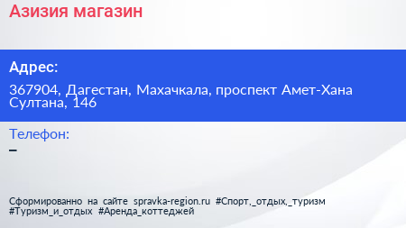 Азизия, магазин по адресу 367904, Дагестан, Махачкала, проспект Амет-Хана Султана, 146 в дальнейшем Организация, размещена в следующих категориях:
