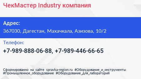 ЧекМастер Industry, компания по адресу 367030, Дагестан, Махачкала, Азизова, 10/2 в дальнейшем Организация, размещена в следующих категориях: