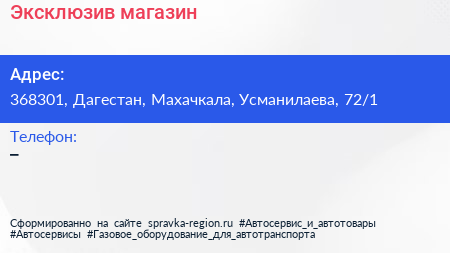 Эксклюзив, магазин по адресу 368301, Дагестан, Махачкала, Усманилаева, 72/1 в дальнейшем Организация, размещена в следующих категориях: