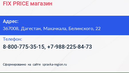 FIX PRICE, магазин по адресу 367008, Дагестан, Махачкала, Белинского, 22 в дальнейшем Организация, размещена в следующих категориях: