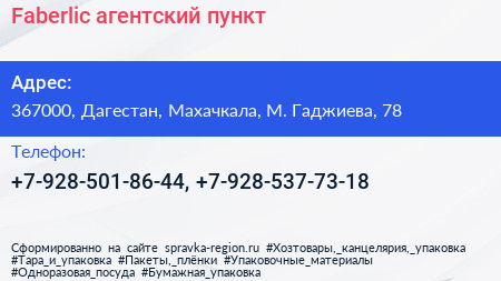 Faberlic, агентский пункт по адресу 367000, Дагестан, Махачкала, М. Гаджиева, 78 в дальнейшем Организация, размещена в следующих категориях:
