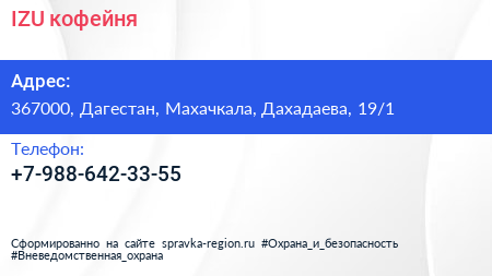 IZU, кофейня по адресу 367000, Дагестан, Махачкала, Дахадаева, 19/1 в дальнейшем Организация, размещена в следующих категориях: