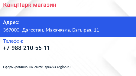 КанцПарк, магазин по адресу 367000, Дагестан, Махачкала, Батырая, 11 в дальнейшем Организация, размещена в следующих категориях: